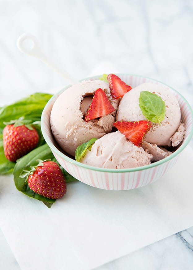 - ضعي بولات الآيس كريم في طبق التقديم ( بإستخدام أداة الآيس كريم ) ثم زيني الطبق بأوراق النعناع الطازجة وحبات الفراولة.